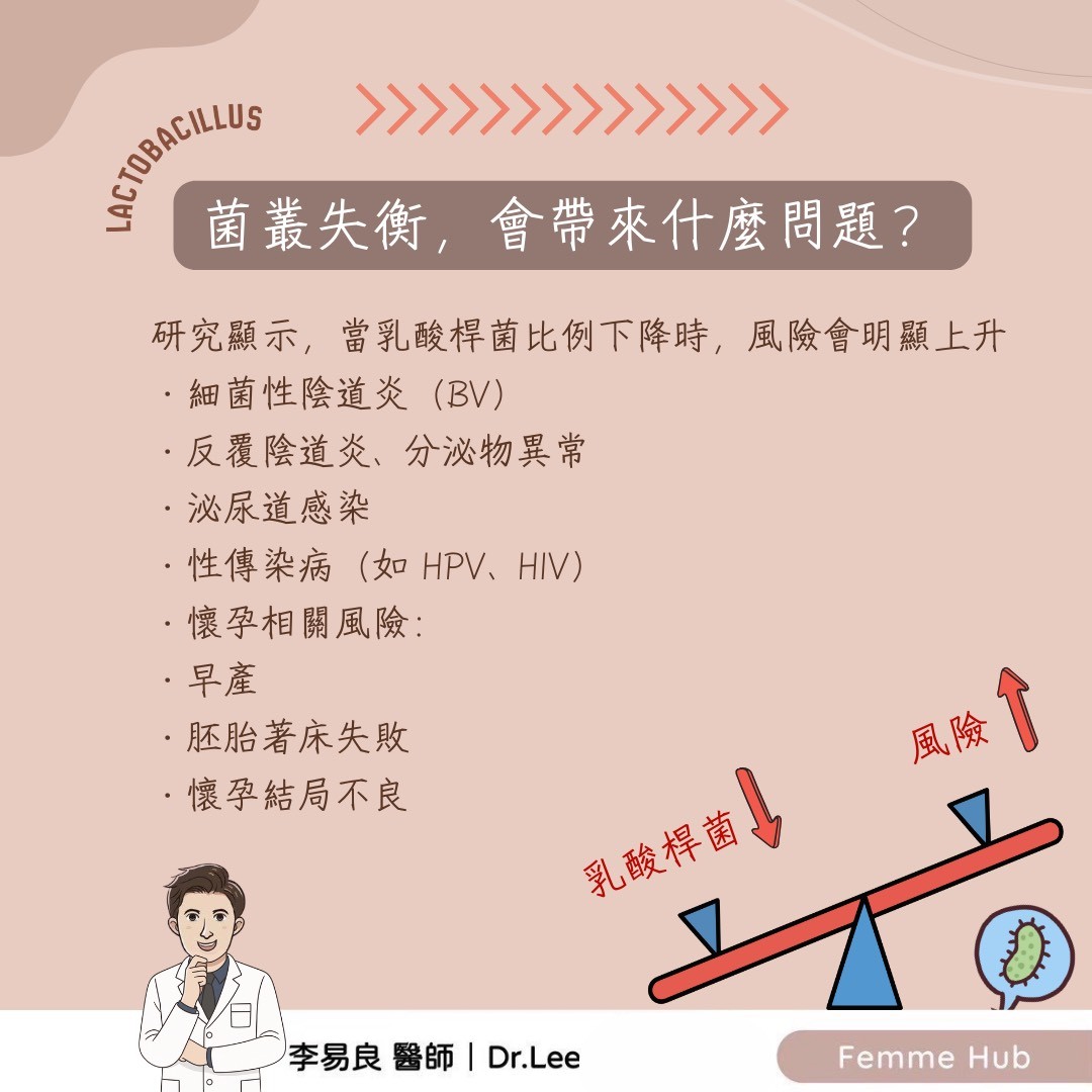 研究顯示,當乳酸桿菌比例下降時,風險會明顯上升,包括: